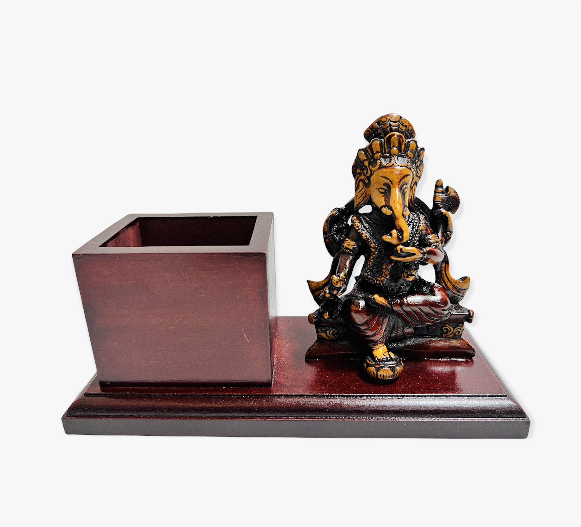 This Pen Holder with Ganesh Statue can be perfect gift items for special guests in seminars, events, and other occasions. Ganesh, also called Ganapati, elephant-headed Hindu god of beginnings, who is traditionally worshipped before any major enterprise and is the patron of intellectuals, bankers, scribes, and authors