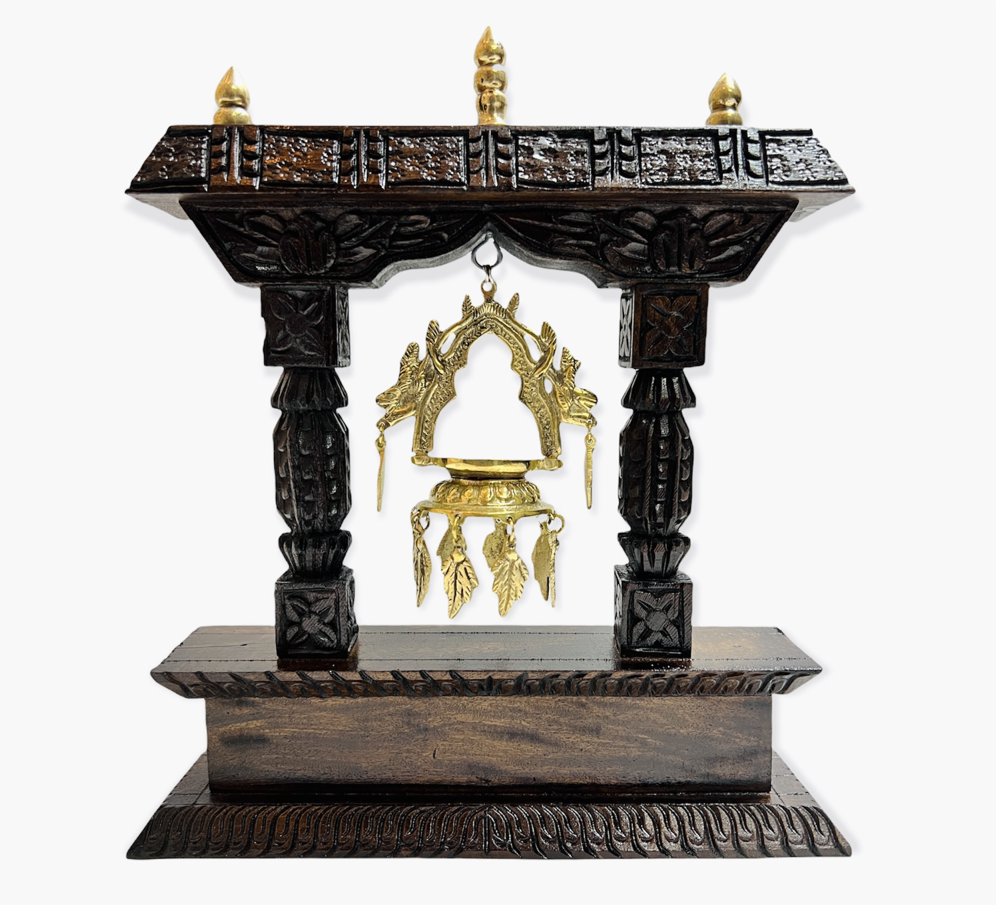 This is Nepali Wooden Showpiece with Traditional Hanging Oil Lamp. This Token of Love can be perfect gift items for special guests in seminars, events, and other occasions.